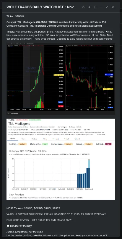 Daily Watchlists with detailed trade ideas, key levels, and market commentary to help you prepare before the open and spot high-probability setups throughout the day.
